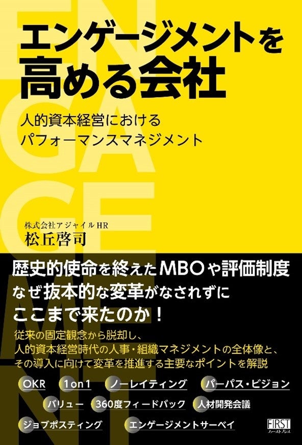 業のパフォーマンスマネジメント変革を支援する株式会社アジャイルHR(本社所在地:東京都港区、代表取締役:松丘啓司)は、新刊「エンゲージメントを高める会社~人的資本経営におけるパフォーマンスマネジメント」(松丘啓司著、ファーストプレス刊)を出版しました。