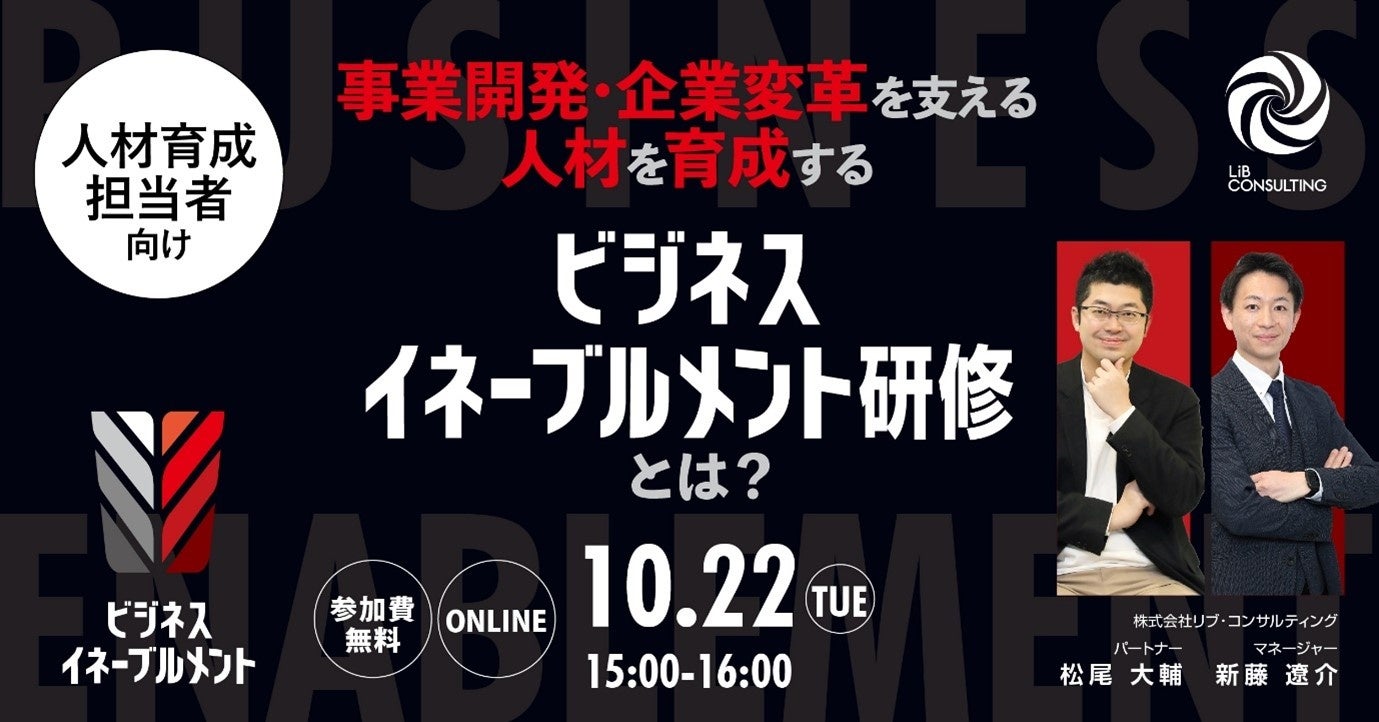 株式会社リブ・コンサルティング(本社:東京都千代田区、代表取締役:関 厳)は、階層別の事業開発人材育成プログラムの裾野を広げる新たなソリューションとして「ビジネスイネーブルメント研修」を開発・提供開始したことをお知らせいたします。併せて研修モニター企業の募集も開始いたします。