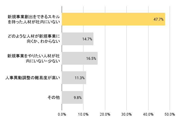 また、人材に課題認識を持つと回答した方に対して具体的な課題をお聞きしたところ、47.7%の方が「新規事業創出をできるスキルを持った人材が社内にいない」と回答しました。