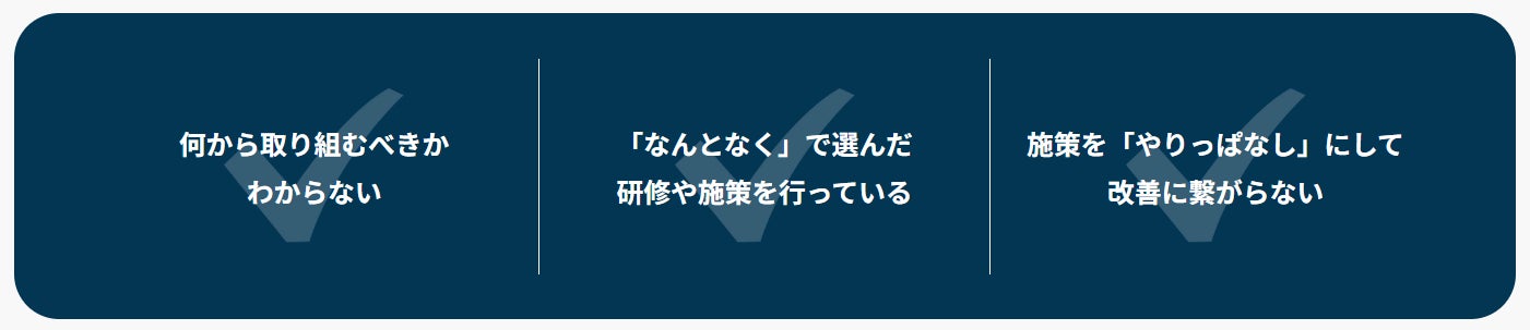 こうした問題を解決し、より本質的で効果的な組織環境改善に繋げていただけるよう、課題抽出から改善までサポートできる本サービスの提供を開始しました。