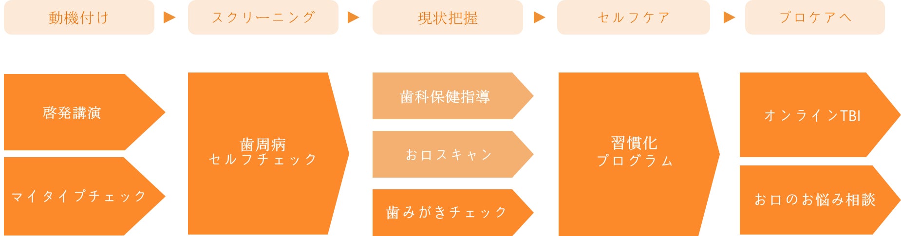 このようなサポートメニューとともに、歯科医院での定期的な健診の重要性もプログラム全体を通じて伝えていきます。