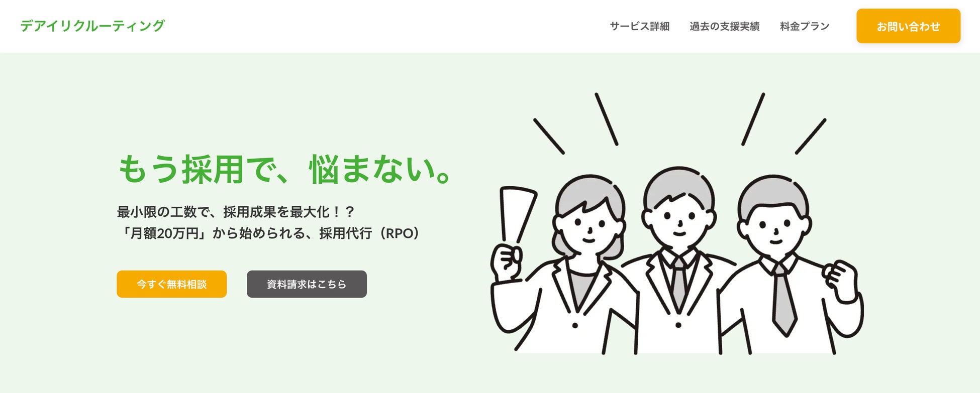 「デアイリクルーティング」は、採用代行(=RPO(Recruitment Process Outsourcing))サービスです。