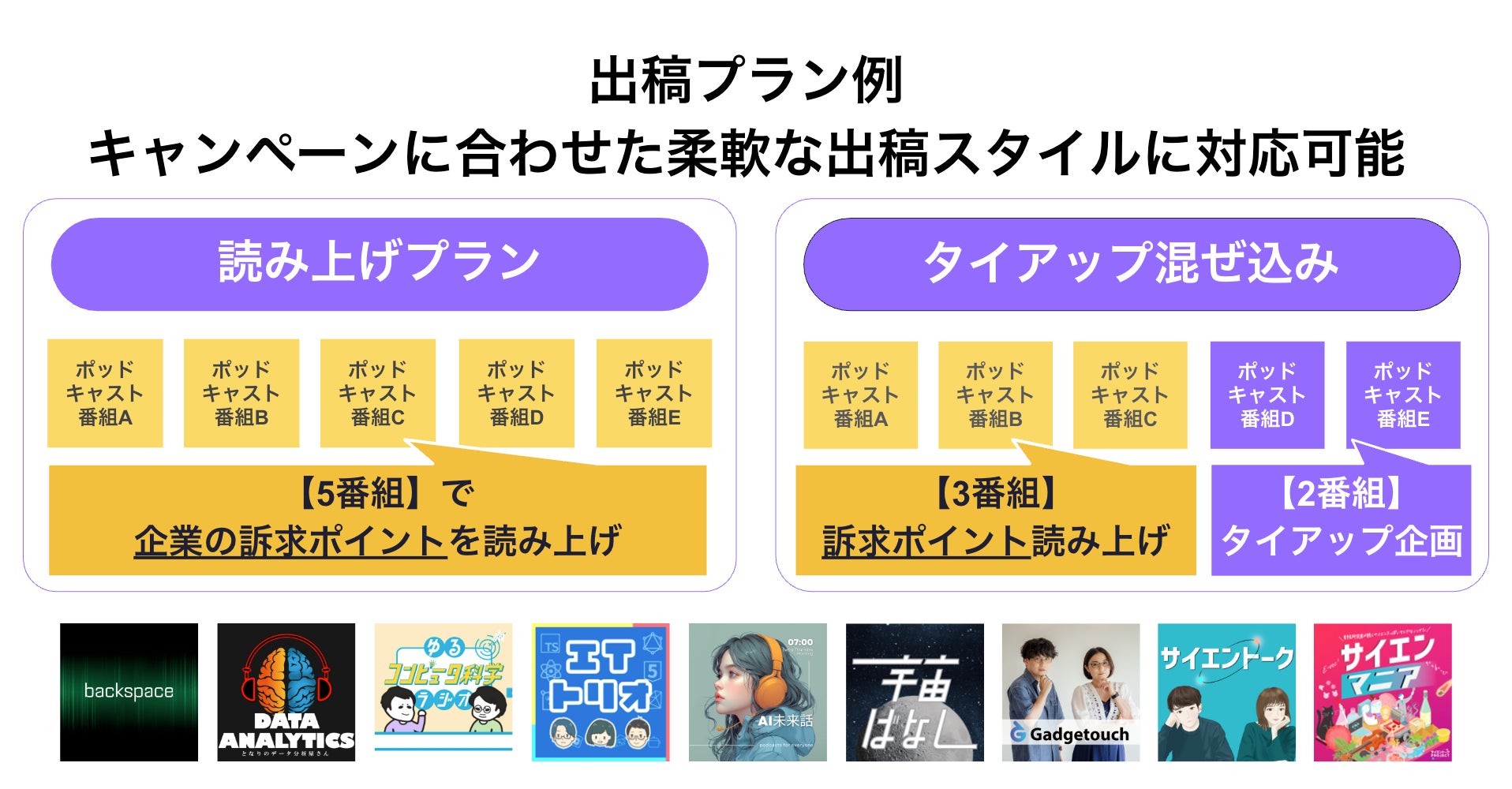 ポッドキャスター読み上げ型音声広告のPODCASTER PROMOTIONには、科学や物理、エンジニアリングなどをテーマにした理系ポッドキャスト番組が多数登録されています。このたび提供を開始した理系人材の採用に特化した音声広告プランでは、番組選定から広告配信、レポーティングまでをワンストップで提供し、企業の採用・広報活動を支援します。