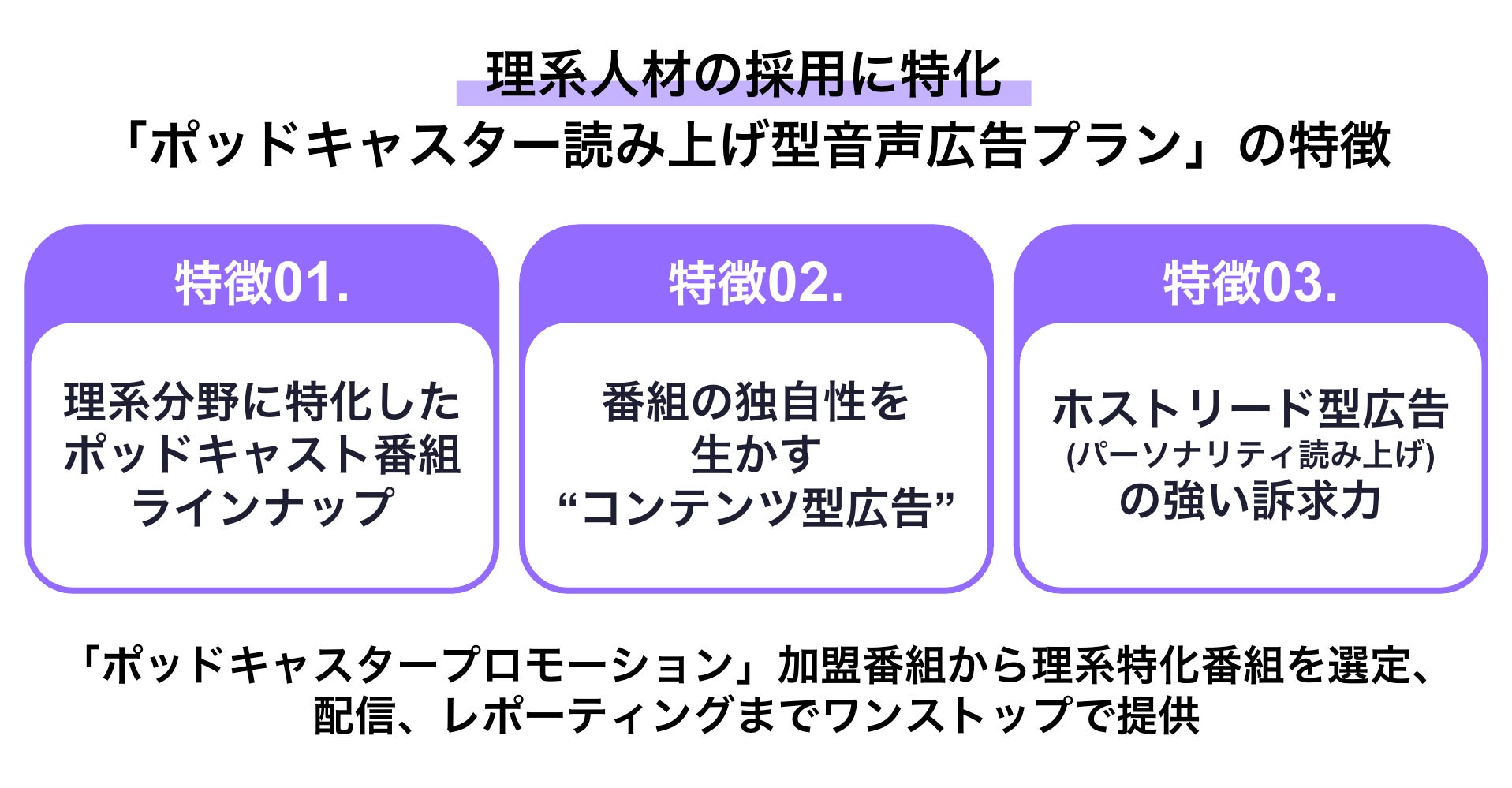理系人材の採用に特化したポッドキャスター読み上げ型音声広告プラン
