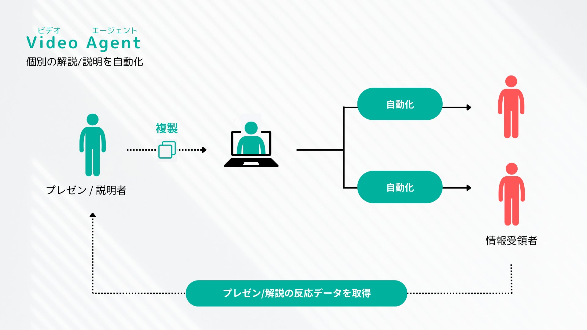 私たちは「デジタルコミュニケーションにパラダイムシフトを。」をPurposeに掲げ、プレゼンや解説といった人にしか出来ないと考えられてきたコミュニケーションを、デジタル上で自動化することを実現するスタートアップ企業です。近年、日本のビジネス環境では、DX(デジタルトランスフォーメーション)が加速し、業務の効率化や人的リソースの最適化が重要視されています。その中で、企業のプレゼンテーションや解説業務自体の自動化に対するニーズも高まりつつあります。「Video Agent」は、こうした市場の変化に対応し、企業の情報伝達をよりスムーズかつ効果的に行うための革新的なソリューションです。